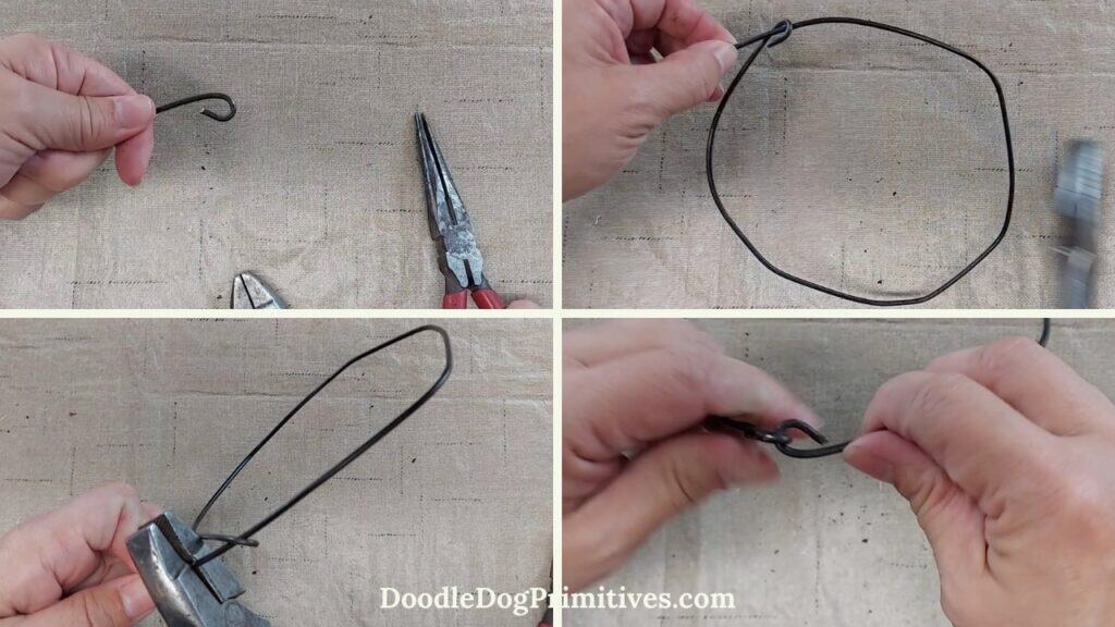 Once the circle was formed, I cut the straight end of the wire off about 3/4″ past the end of the circle and used the needle nose pliers to make a loop in that end of the wire. I put the two loops together and crimped the loops closed.